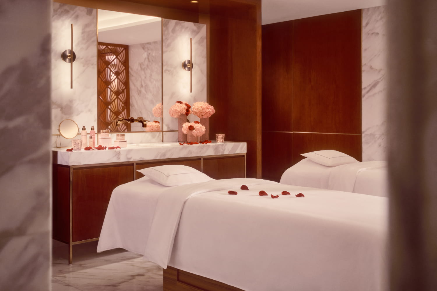 Au Spa Royal Mansour Casablanca, Sérénité à deux se vit comme une parenthèse hors du temps. Dans l’intimité d’une cabine dédiée, deux massages personnalisés de 45 minutes, réalisés en simultané, invitent à un moment de détente profonde et de complicité, à partager en couple tout au long du mois de février.
